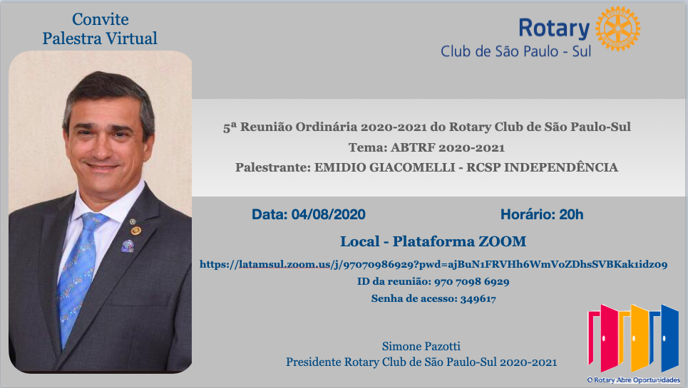 Postado em: 04 de Agosto de 2020 por Rotary Club de São Paulo-Sul